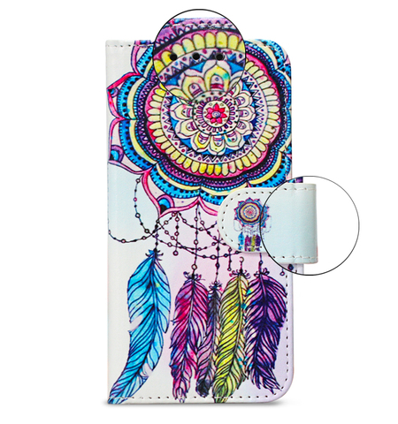 Atrapasueños colorido pintura OEM ODM cuero PU Funda tarjeta cartera teléfono funda para iPhone/para Samsung